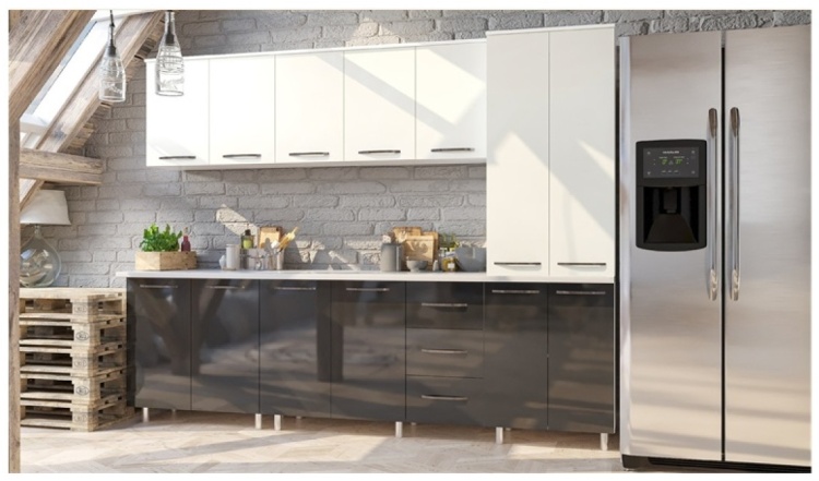 Отзывы о Кухонный гарнитур AsiaBrand Миринда, 240x210х60 см, ЛДСП, черный, белый - 101202946