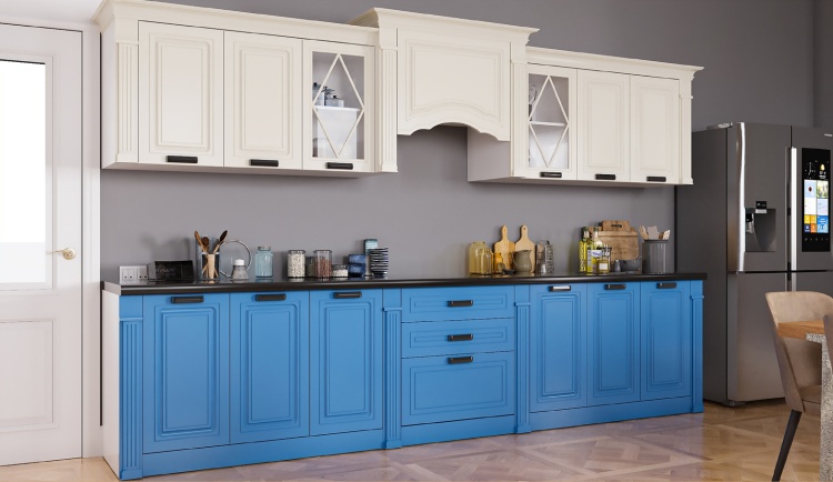 Кухонный гарнитур AsiaBrand , 350x221х60 см, ЛДСП, белый, синий - 103829473