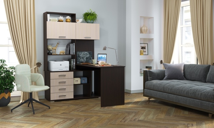 Стол компьютерный с надстройкой Памир ПКС 11, 138.4х122x187 см, коричневый, бежевый - 103933223