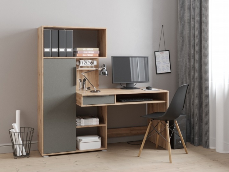 Стол компьютерный с надстройкой НК-Мебель Квадро, 150х58x149 см, серый, бежевый - 104603856