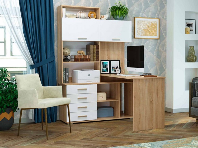 Стол компьютерный с надстройкой Памир ПКС 11, 138х120x187 см, белый, бежевый - 104787833