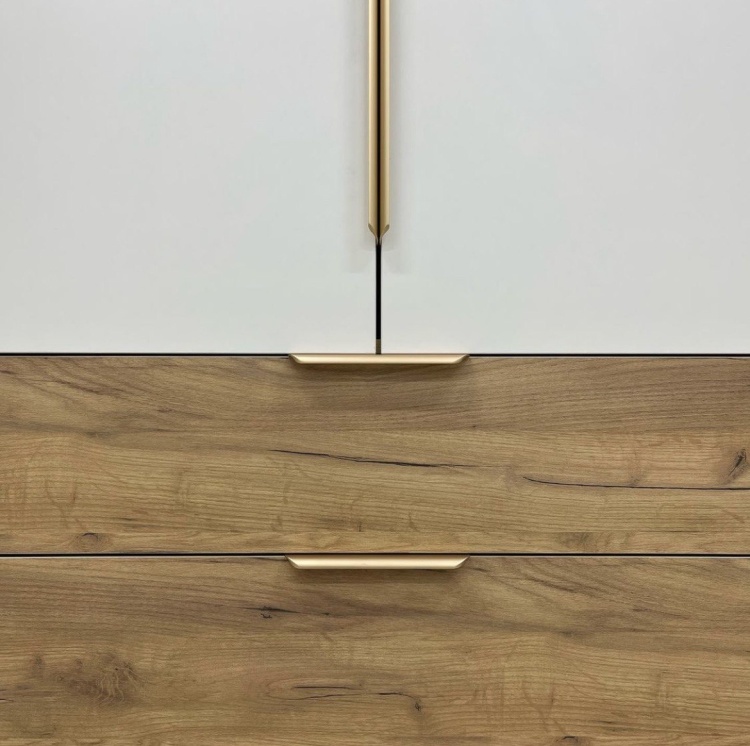 Комментарий: Шкаф отличный! Хорошо и качественно сделан. Доставка была вовремя. За отдельную плату сами собрали. Вначале хотел полностью белый шкаф, но так как подходящего размера не было, заказал такой. Теперь рад, что заказал именно такой, коричневое дерево хорошо оттеняет белые двери. Вживую смотрится великолепно! Никаких сколов не заметил. Верхние дверцы открываются механизмом Push open.