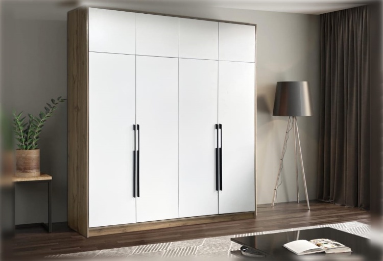 Распашной шкаф AsiaBrend Барла 4Д, 200x240х47 см, белый, коричневый - 106649564