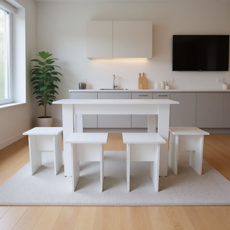 Комплект для кухни, стол 120х70 см + 4 табурета, белый - 107924610