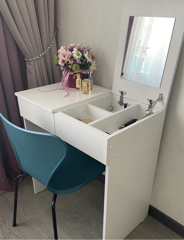 Комментарий: Стол больше подходит юным девушкам) Он маленький и зеркало в расположено низко. Если будете брать нужно это учитывать, а так очень понравился компактный.
