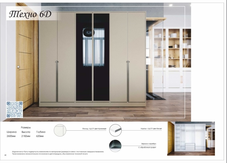Распашной шкаф AsiaBrand Texno 6D 215551, 260x218х62 см, бежевый - 110273627