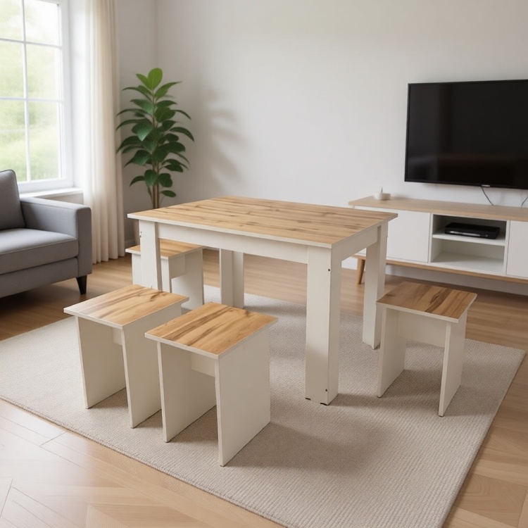 Комплект для кухни, стол 120х80 см + 4 табурета, белый, коричневый - 115950635