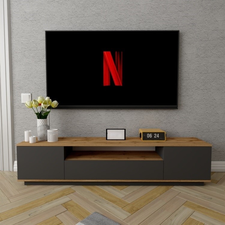 ТВ-тумба напольная Рим KRB106, 180x40x35 см, серый, светло-коричневый - 117311889