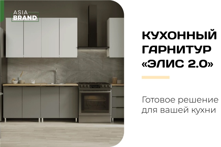 Отзывы о Кухонный гарнитур AsiaBrand Элис 2.0, 200x235х60 см, ЛДСП, белый, серый - 117425587