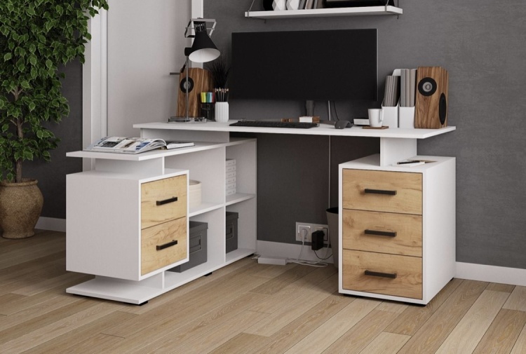Стол компьютерный 2024, 150х60x75 см, белый, коричневый - 130133167