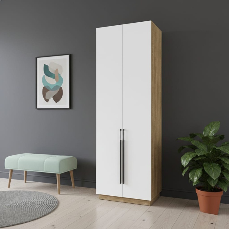 Распашной шкаф Уют 145802624, 80x240х52 см, белый, светло-коричневый - 132440349