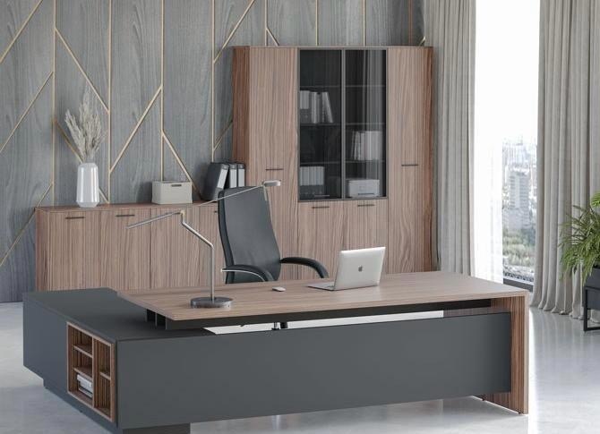 Отзывы о Комплект офисной мебели (стол, тумба, шкаф, стеллаж) ILMER КР-2032, графит, коричневый - 133412905
